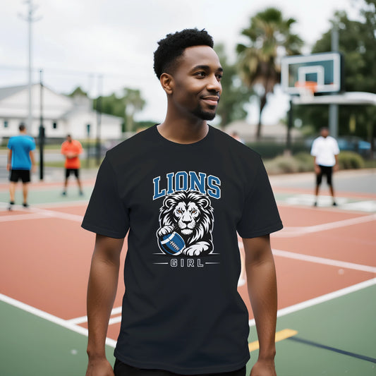 Lions Girl Messy Bun T-Shirt – Funny Sports Fan Unisex Crewneck Tee