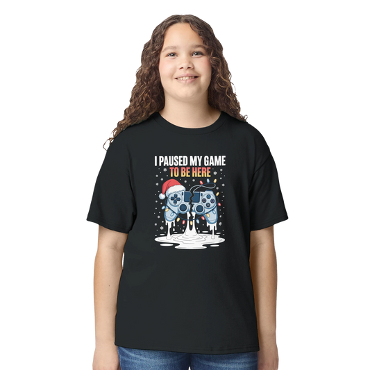 I Paused My Game to Be Here – Funny Christmas Gaming Kids T-Shirt | Classic Crewneck