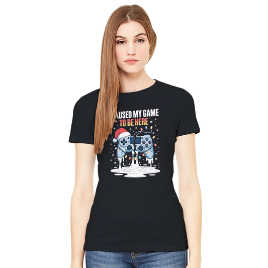 I Paused My Game to Be Here – Funny Christmas Gaming Women’s T-Shirt | Slim Fit Crewneck