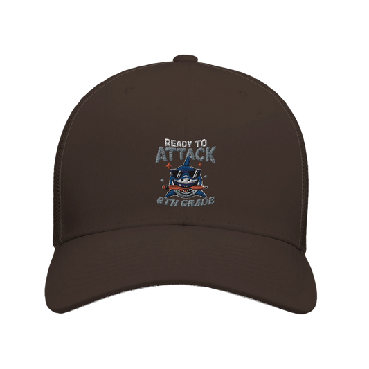 Adult 6-Panel Trucker Cap | Flexfit 6511 | “Ready to Attack” Blue Shark Design | Customizable for 1st to 6th Grade