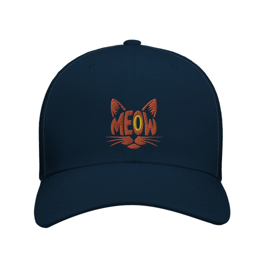 Retro Trucker Cap | Flexfit 6606 | MEOW Cat Face Graphic Hat | Funny Cat Lover Snapback