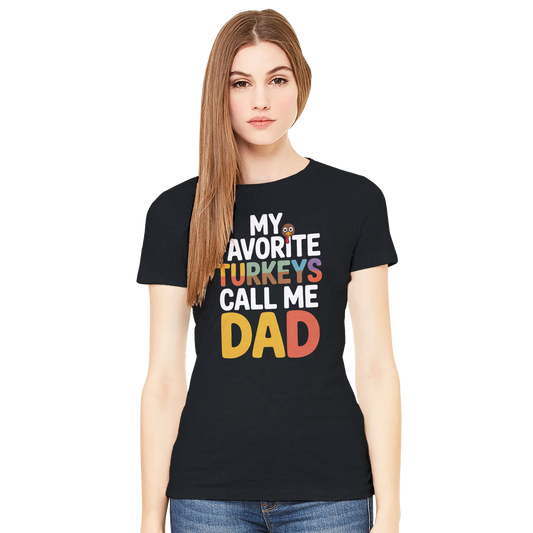 My Favorite Turkeys Call Me Dad Thanksgiving Shirt | Funny Father Premium Women’s Crewneck Tee