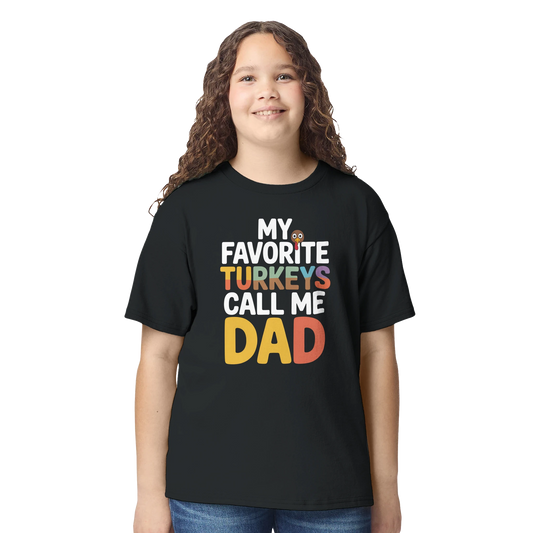 My Favorite Turkeys Call Me Dad Thanksgiving Father Classic Kids Crewneck T-shirt