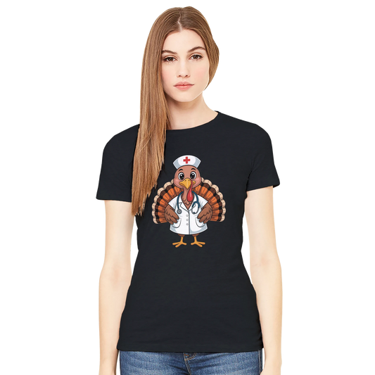 Thanksgiving Scrub Tops – Premium Women’s Crewneck T-Shirt | Cute Turkey Nurse Holiday Shirt for Nurses & Medical Staff