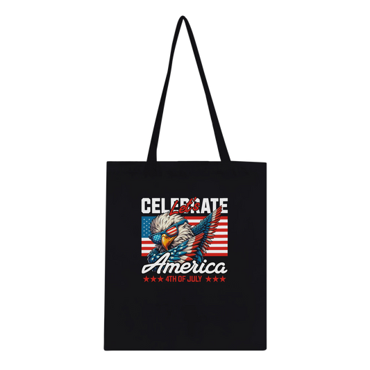 Let’s Celebrate America 4th of July Tote Bag – Patriotic Cotton Reusable Bag for Independence Day