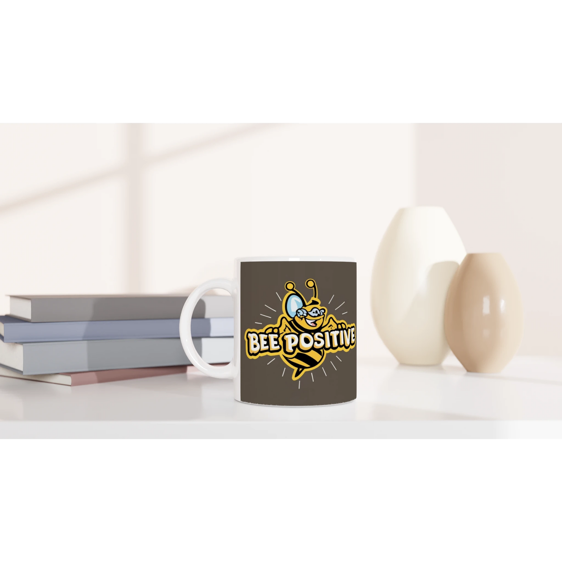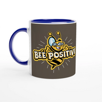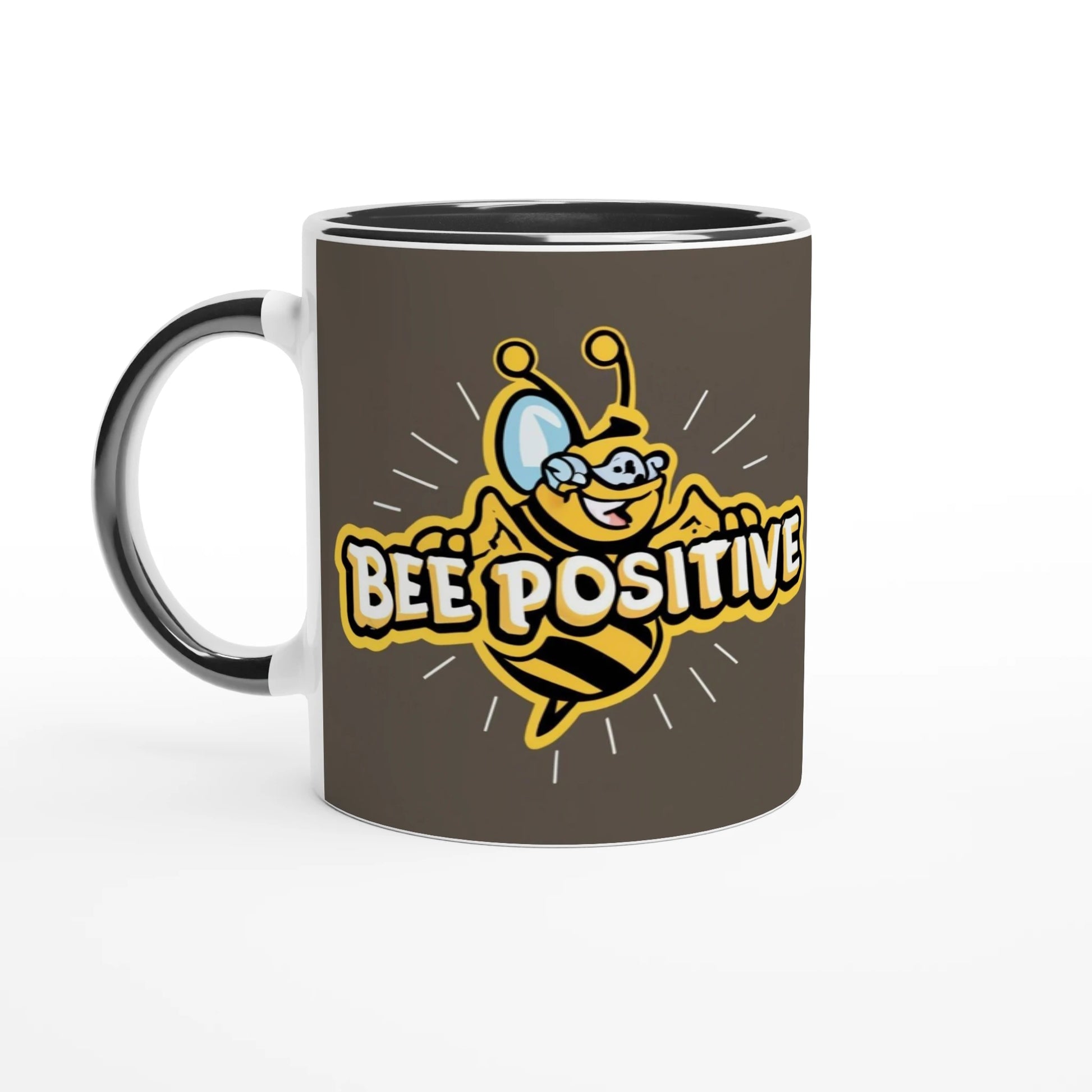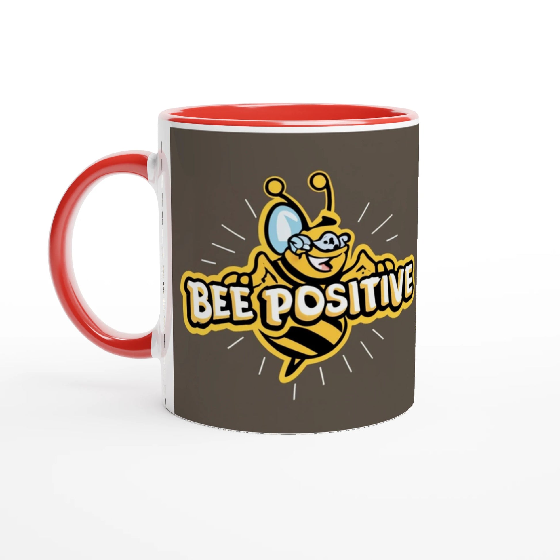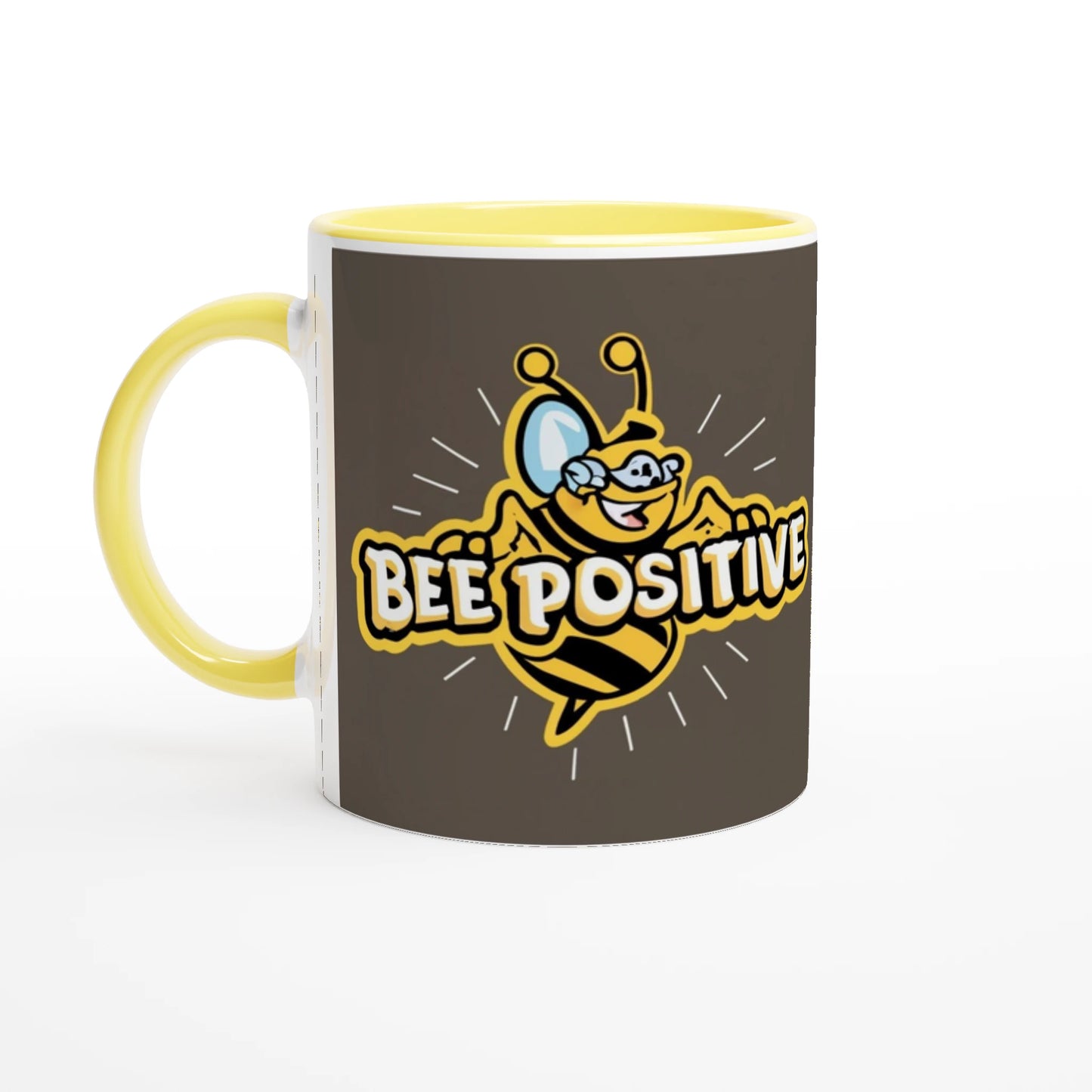 11oz Ceramic Mug – "Bee Positive" – Inspirational Design with Colored Rim