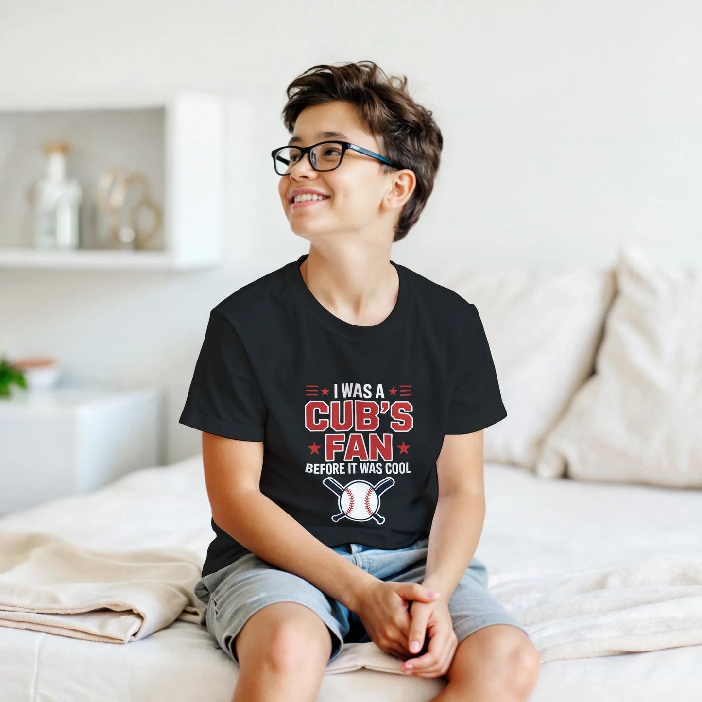 Classic Kids Crewneck T-Shirt ,I Was a Cub’s Fan Before It Was Cool Soft, Durable & Pre-Shrunk | Kids Baseball Fan Shirt
