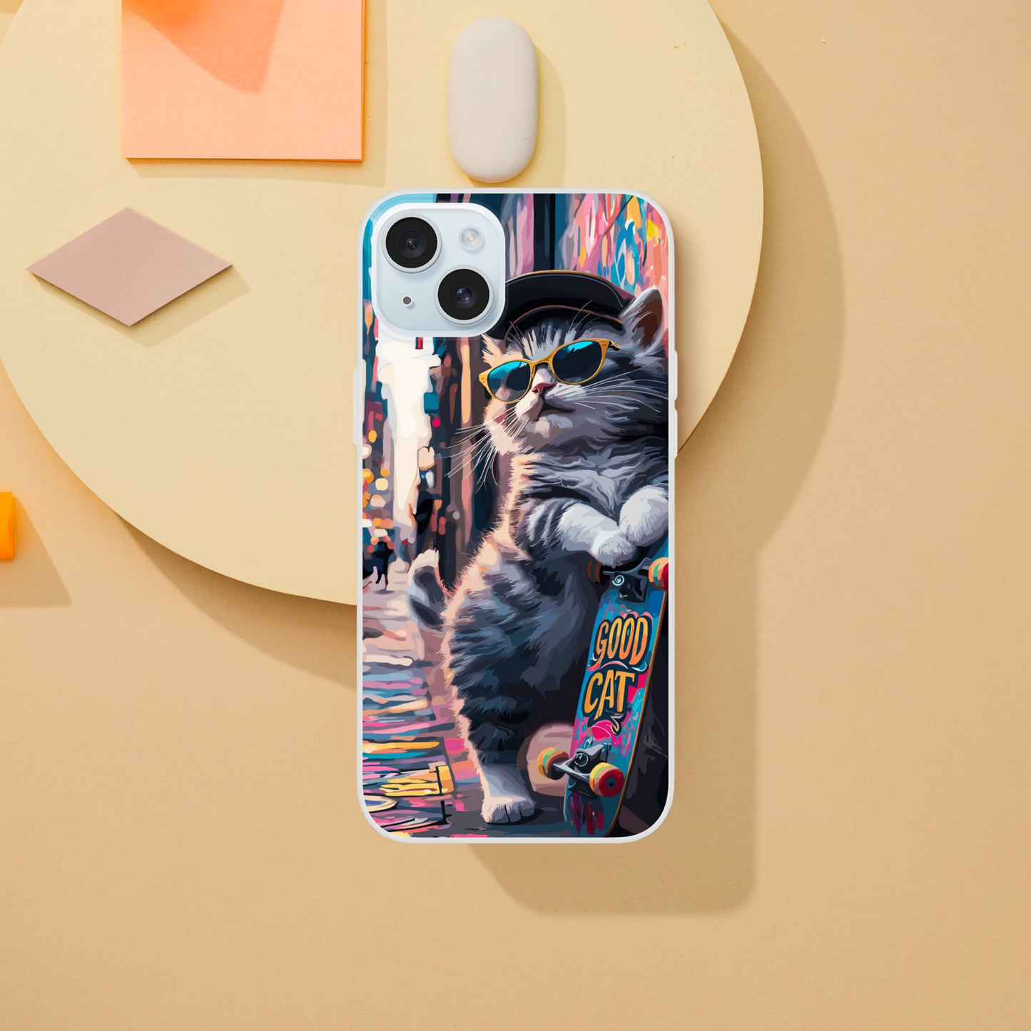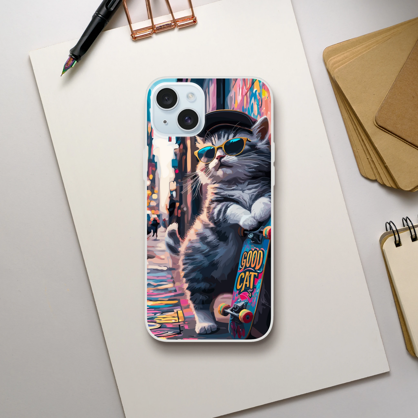 Cool Angora Kitten Flexi Phone Case – Street Art Graffiti Style | Trendy Protective iPhone Case