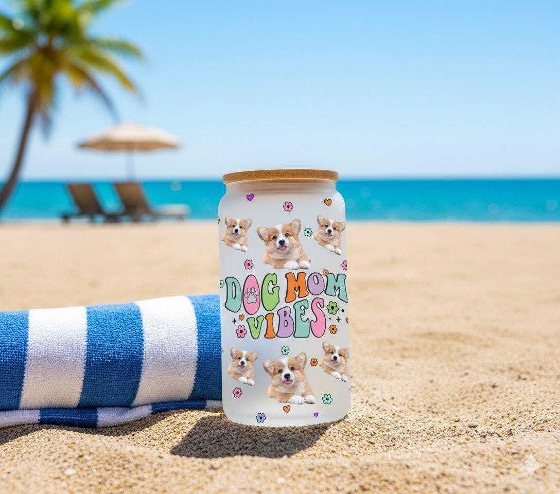 Dog Mom Vibes - Cutie Puppy - Custom Photo And Name - Personalized Glass Bottle, Frosted Bottle, Gift For Pet Lover