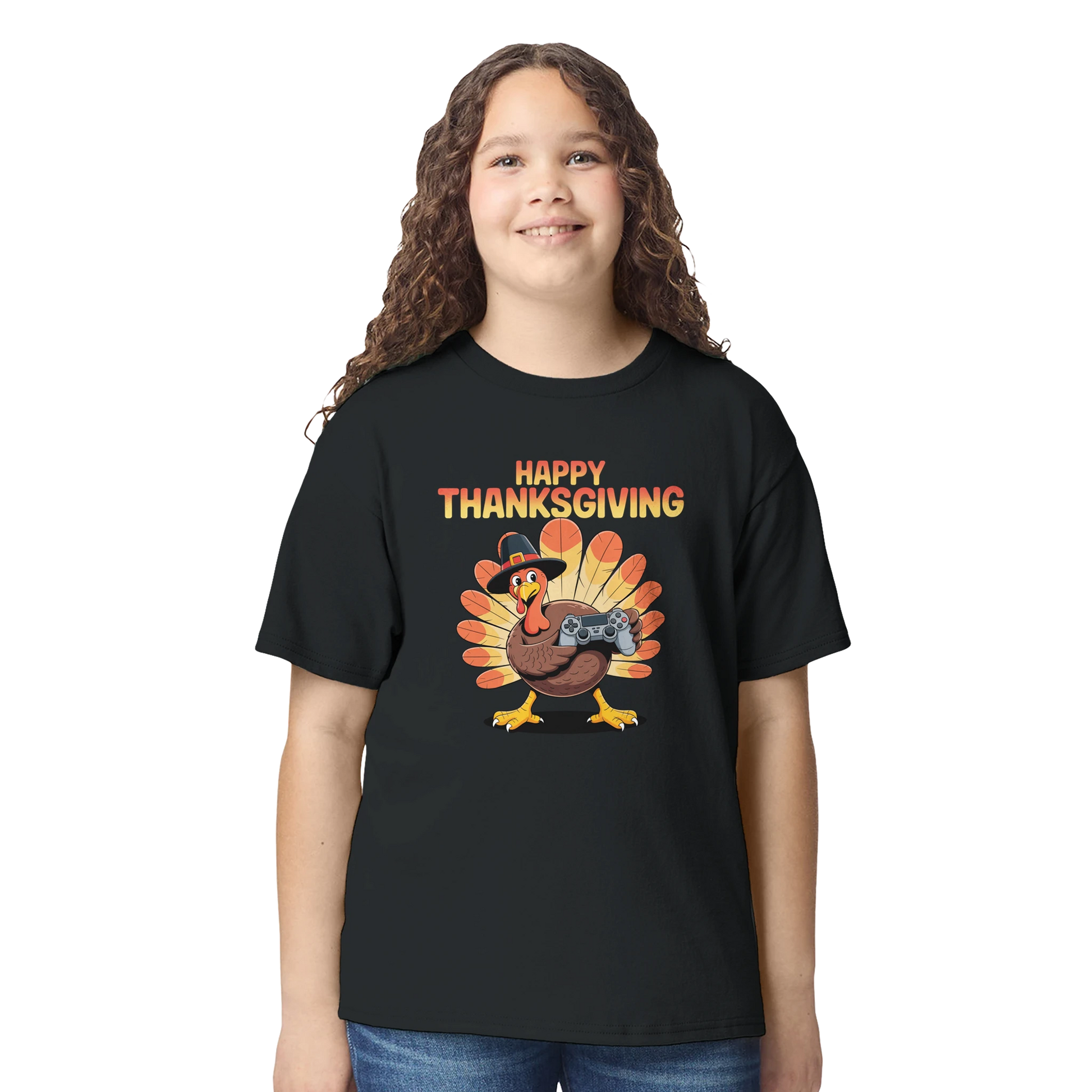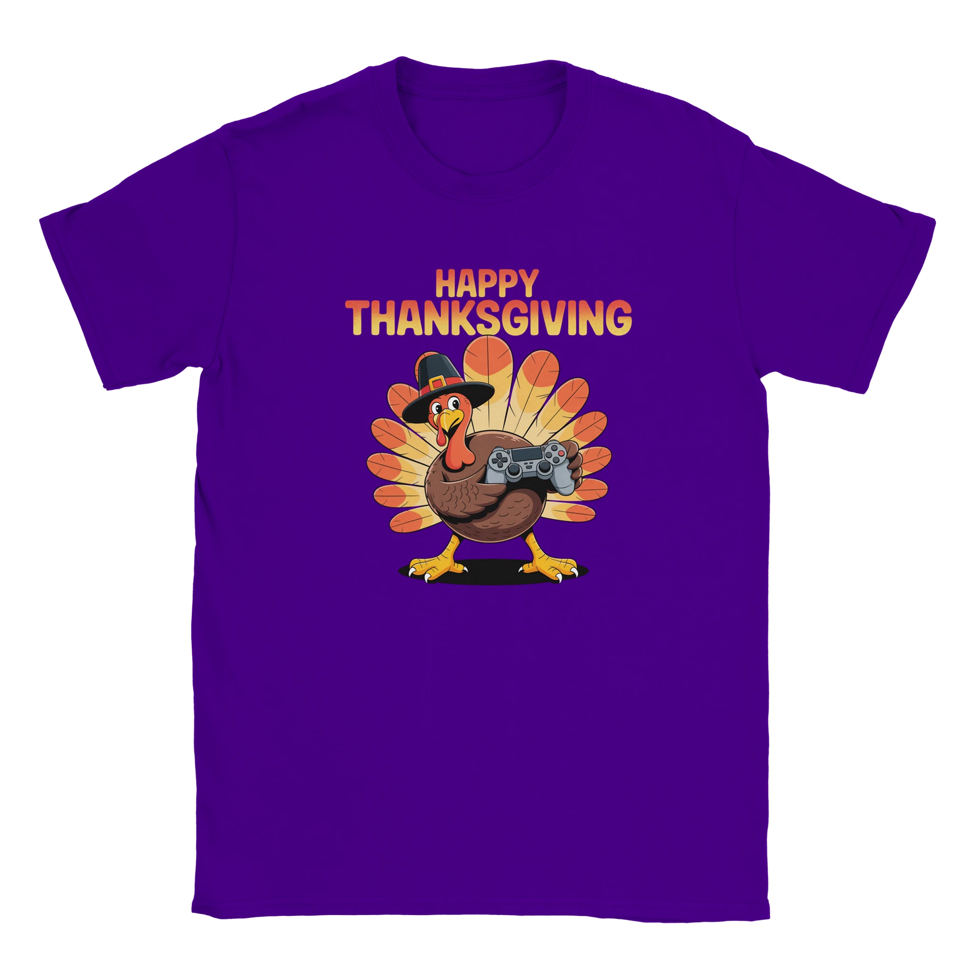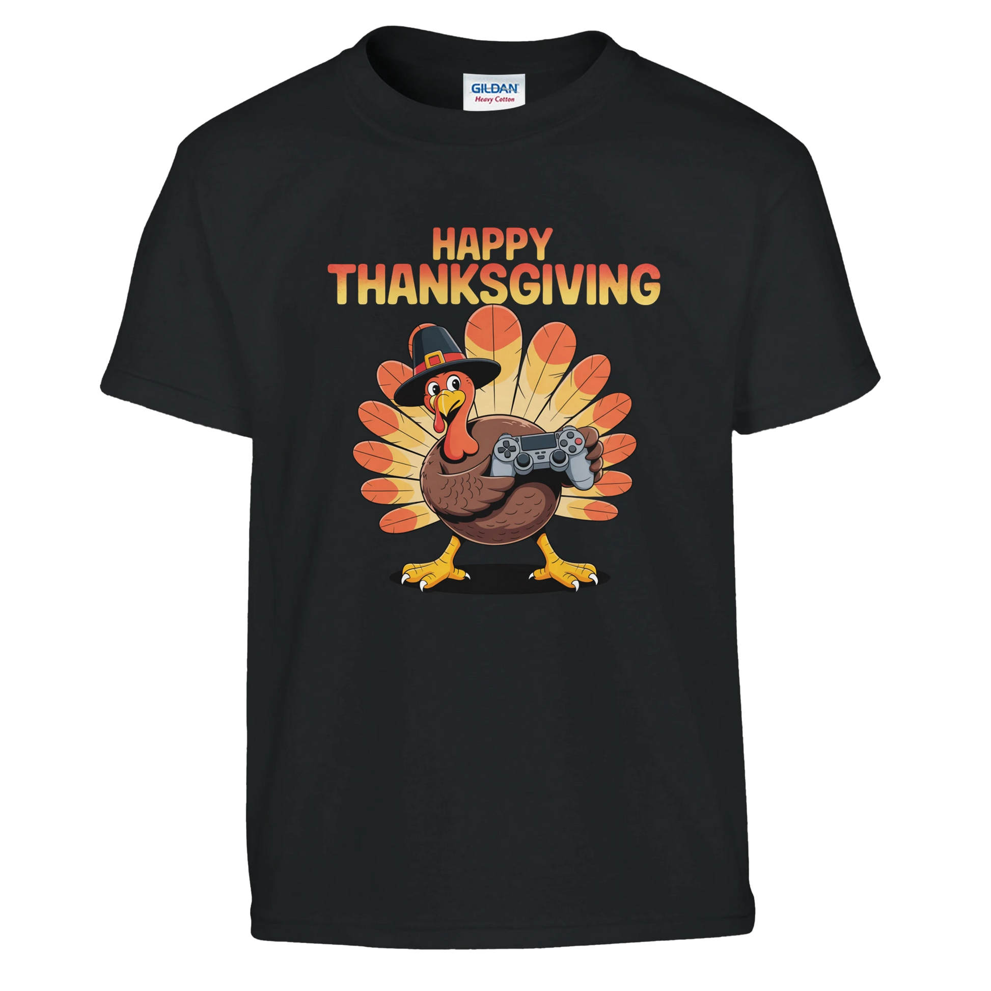 Funny Thanksgiving Turkey Gamer Kids T-Shirt – Happy Thanksgiving Video Game Shirt for Boys & Girls