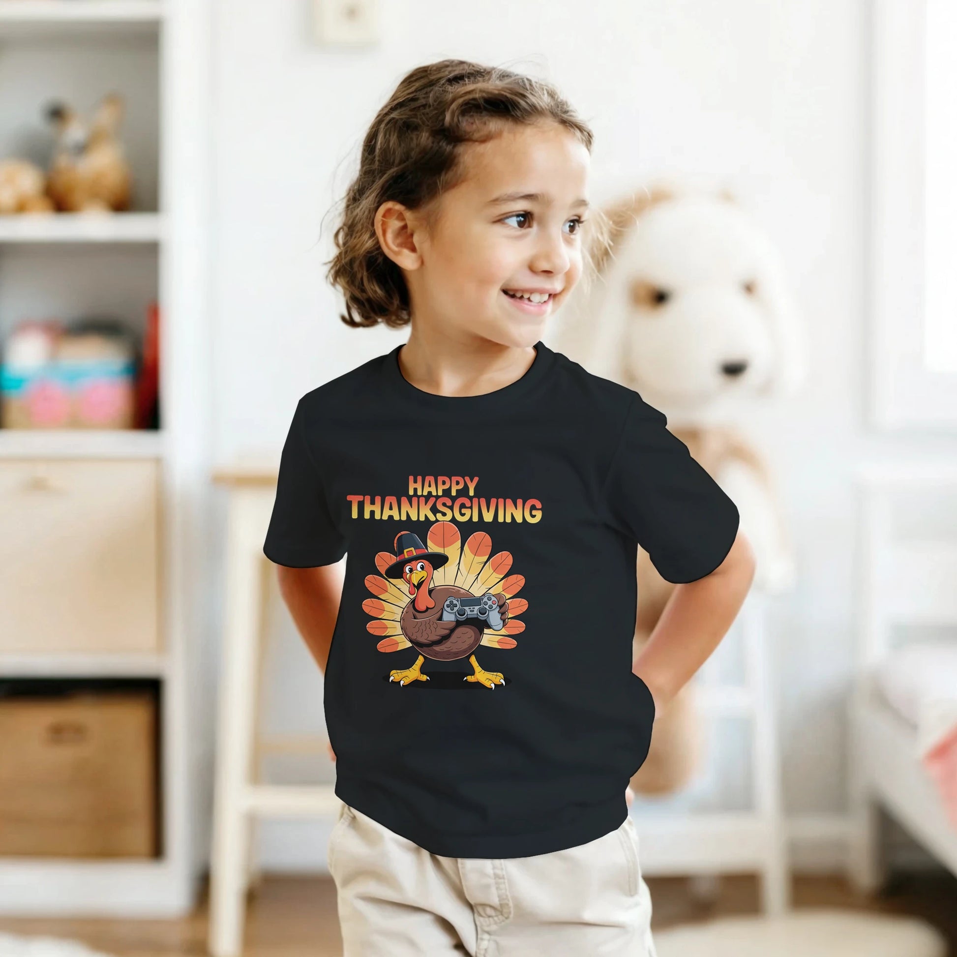 ⭐Unique Thanksgiving Design – Fun cartoon turkey gamer graphic for boys & girls.