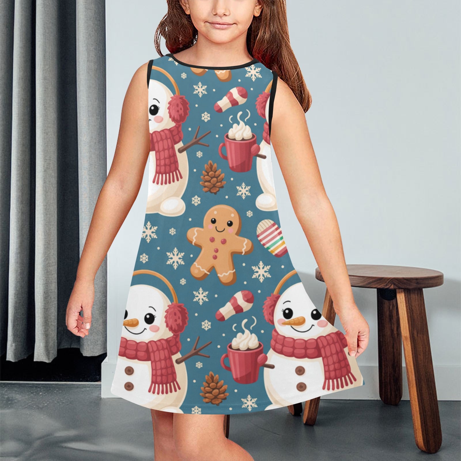 Girls' Christmas Sleeveless Dress – Soft Polyester Spandex, Breathable & Comfortable