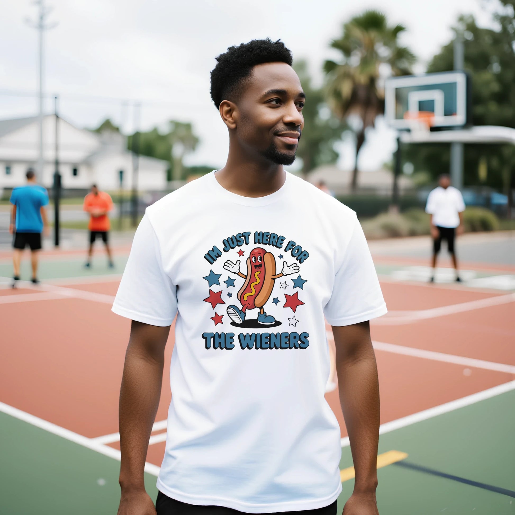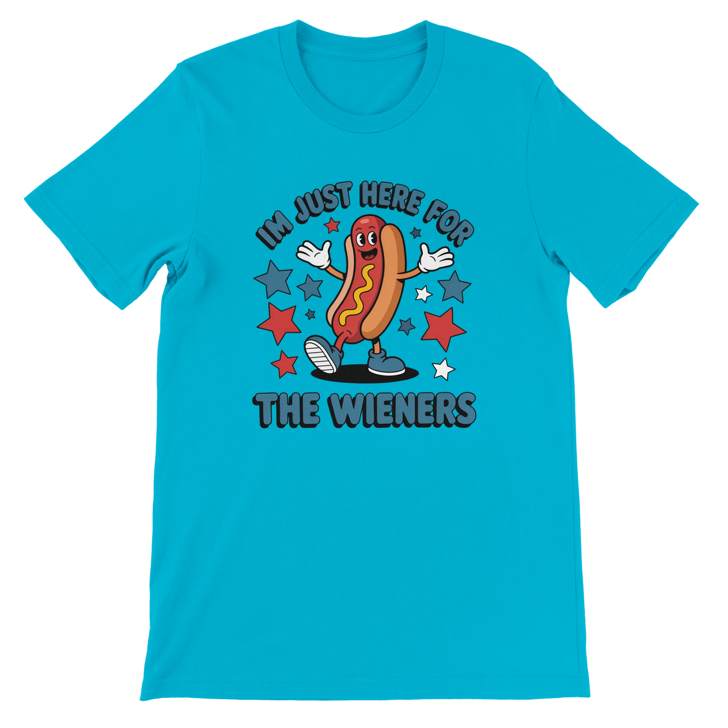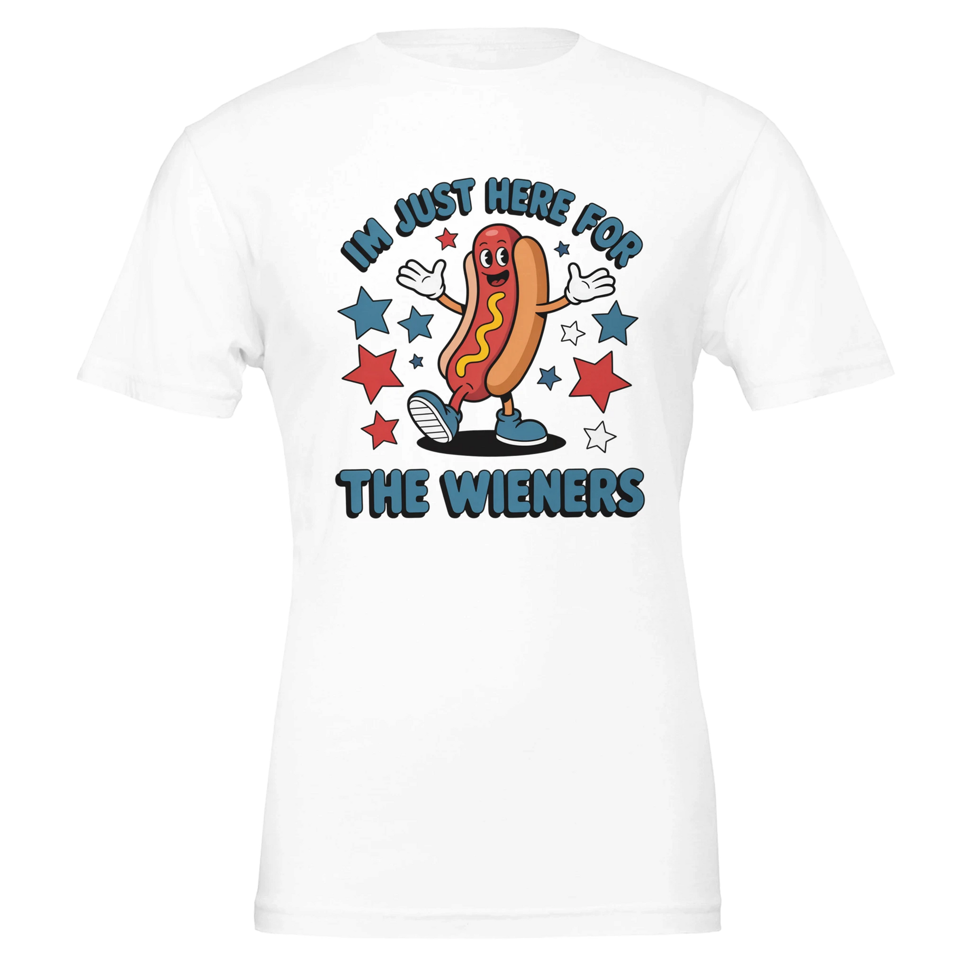 I’m Just Here for the Wieners T-Shirt – Funny Hot Dog BBQ Cookout Tee, Premium Unisex Crewneck