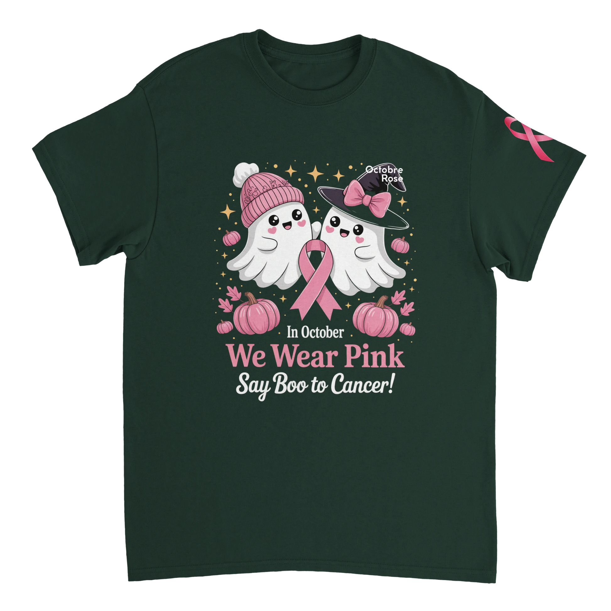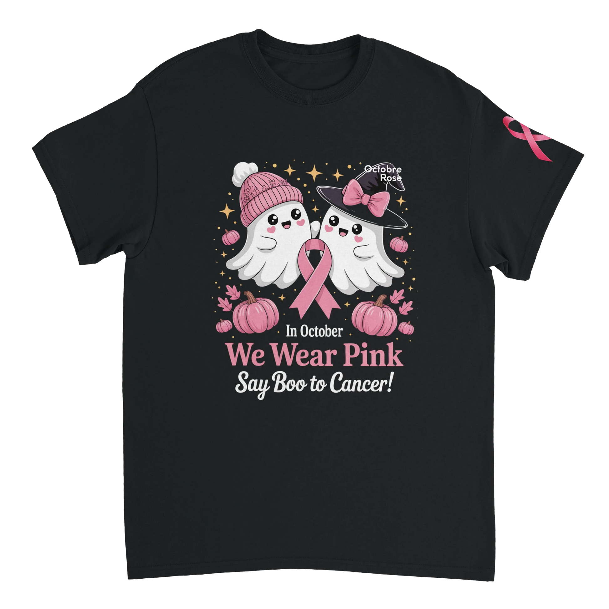 In October We Wear Pink Say Boo to Cancer T-Shirt, Breast Cancer Awareness Heavyweight Unisex Tee