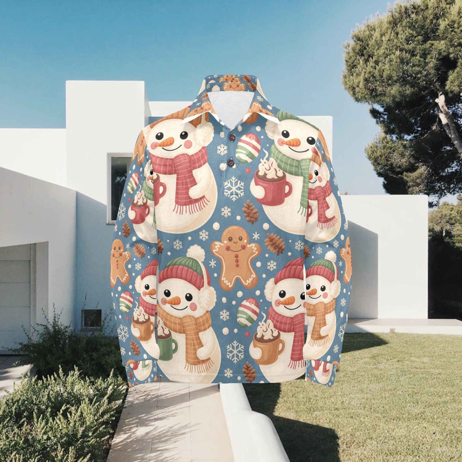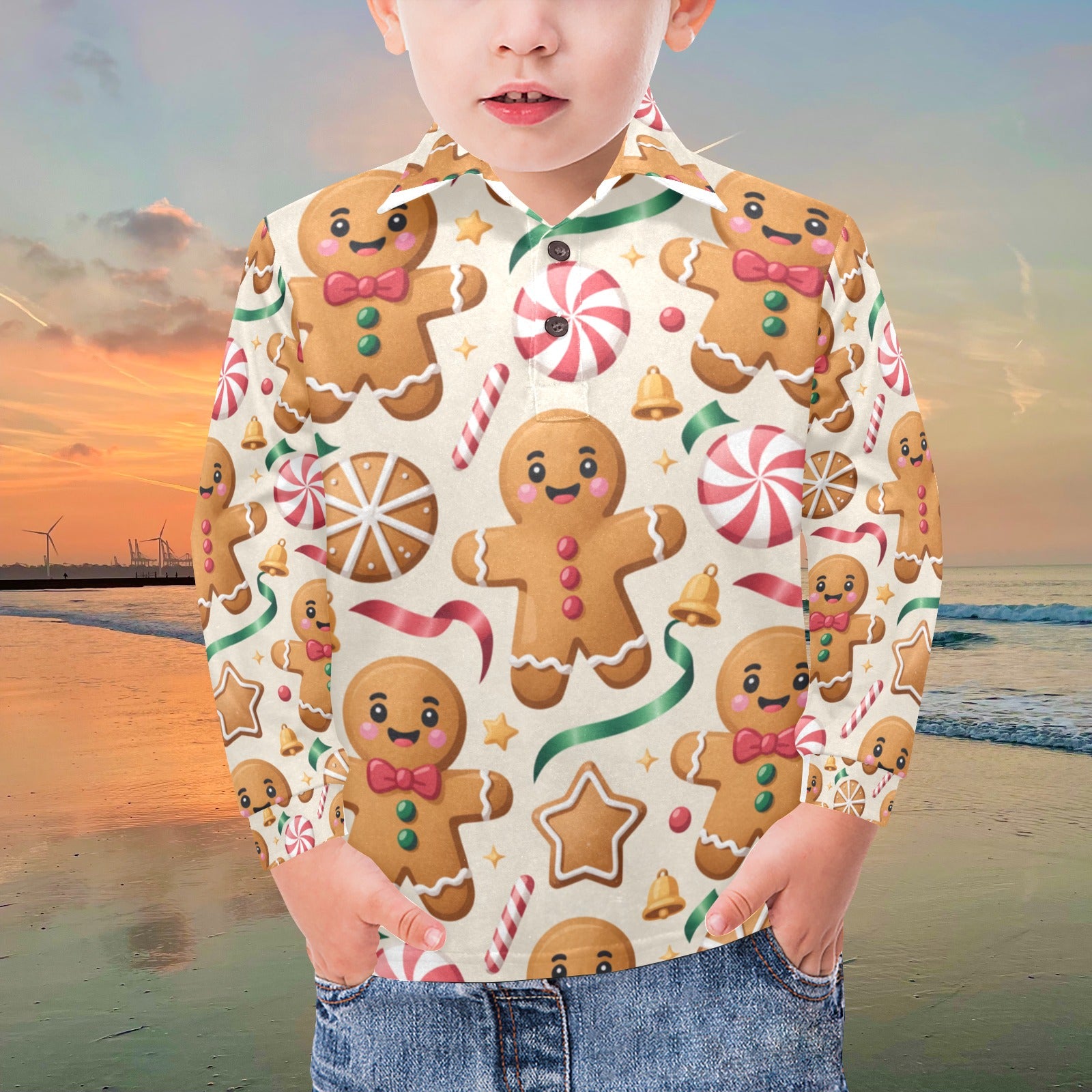 Little Boys’ Long Sleeve Christmas Polo Shirt – Santa & Reindeer, Snowman & Cocoa, or Gingerbread Wonderland | Festive Holiday Top for Kids (Ages 2–7)