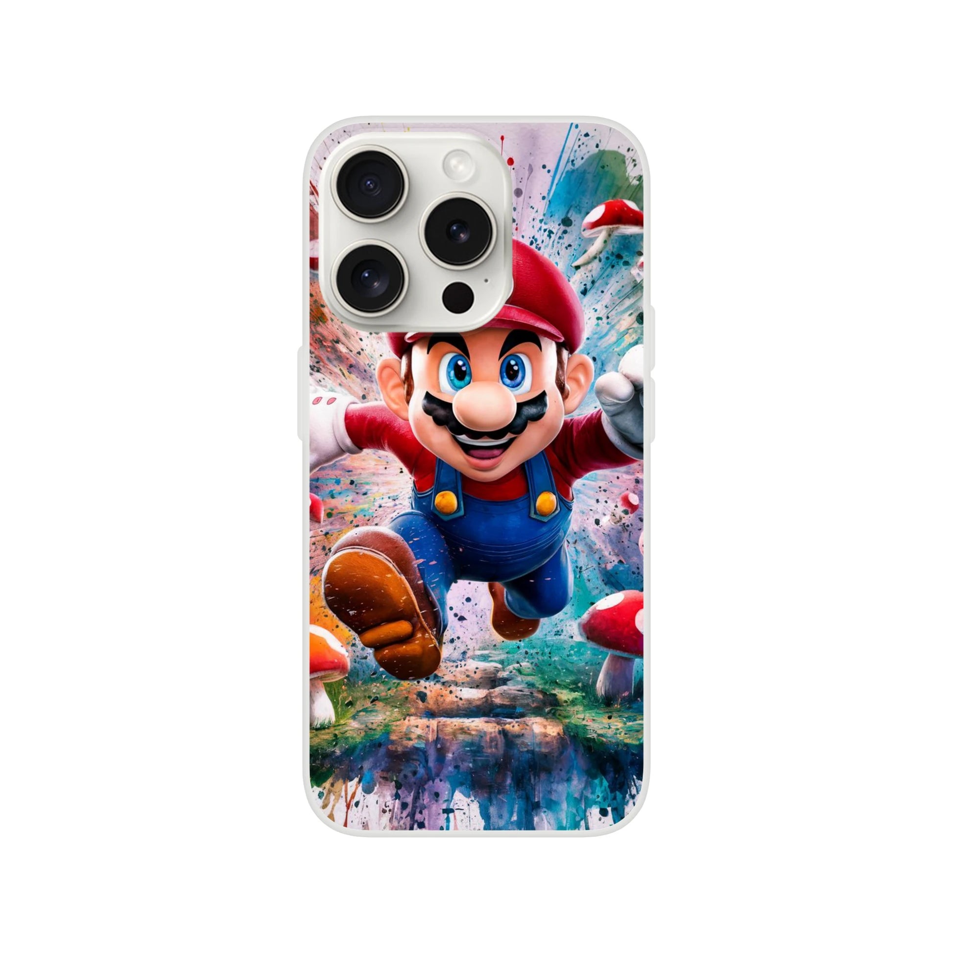 Level up your style with our Mario Flexi Phone Case, featuring the iconic video game hero in ultra high-definition detail. Rendered with perfect clarity, Mario jumps toward the viewer with a vibrant, smiling expression, surrounded by a dynamic background of colorful mushrooms and energy-filled motion. This conceptual art portrait design blends nostalgia with modern style, making it a must-have for gamers and art lovers alike.