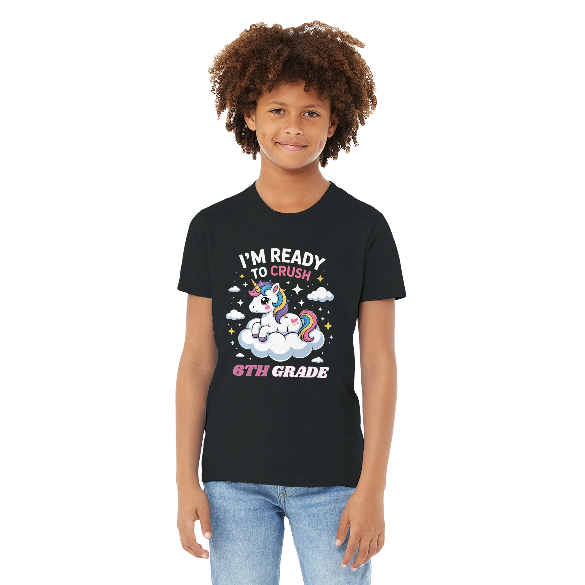 Premium Kids Crewneck T-shirt – Cute Kawaii Unicorn "I’m Ready to Crush" – Rainbow Mane, Magical Stars & Clouds – Back to School Outfit