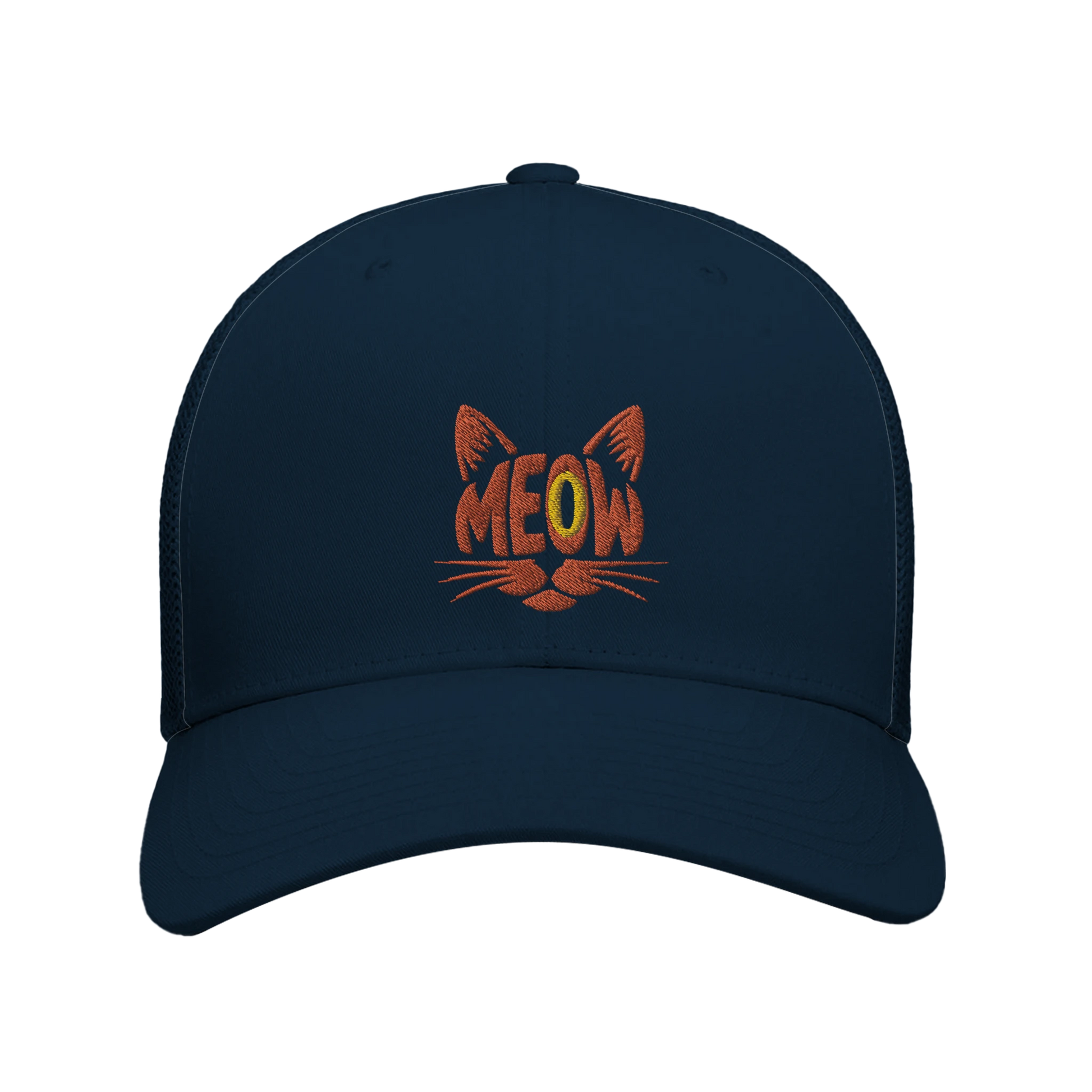 Retro Trucker Cap | Flexfit 6606 | MEOW Cat Face Graphic Hat | Funny Cat Lover Snapback