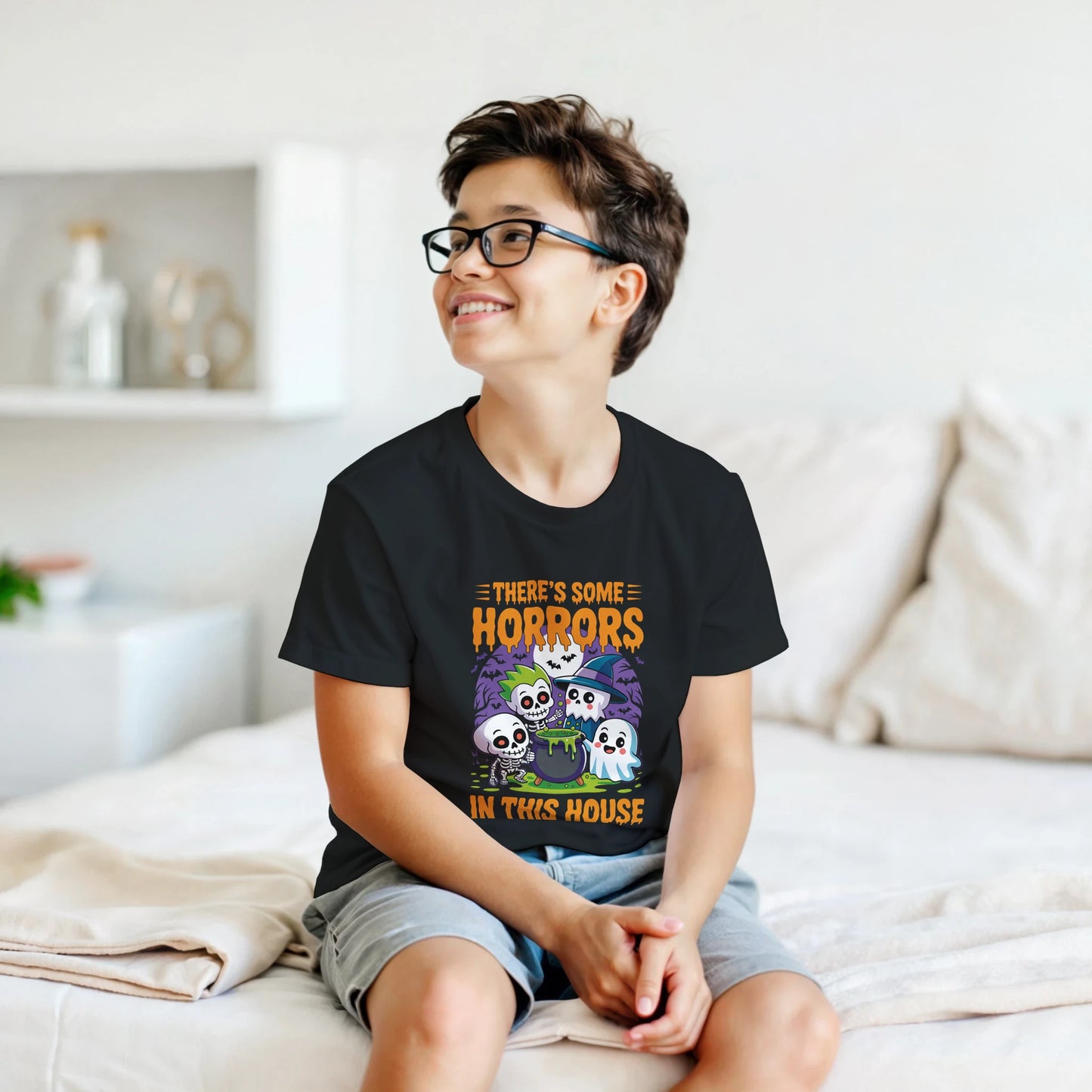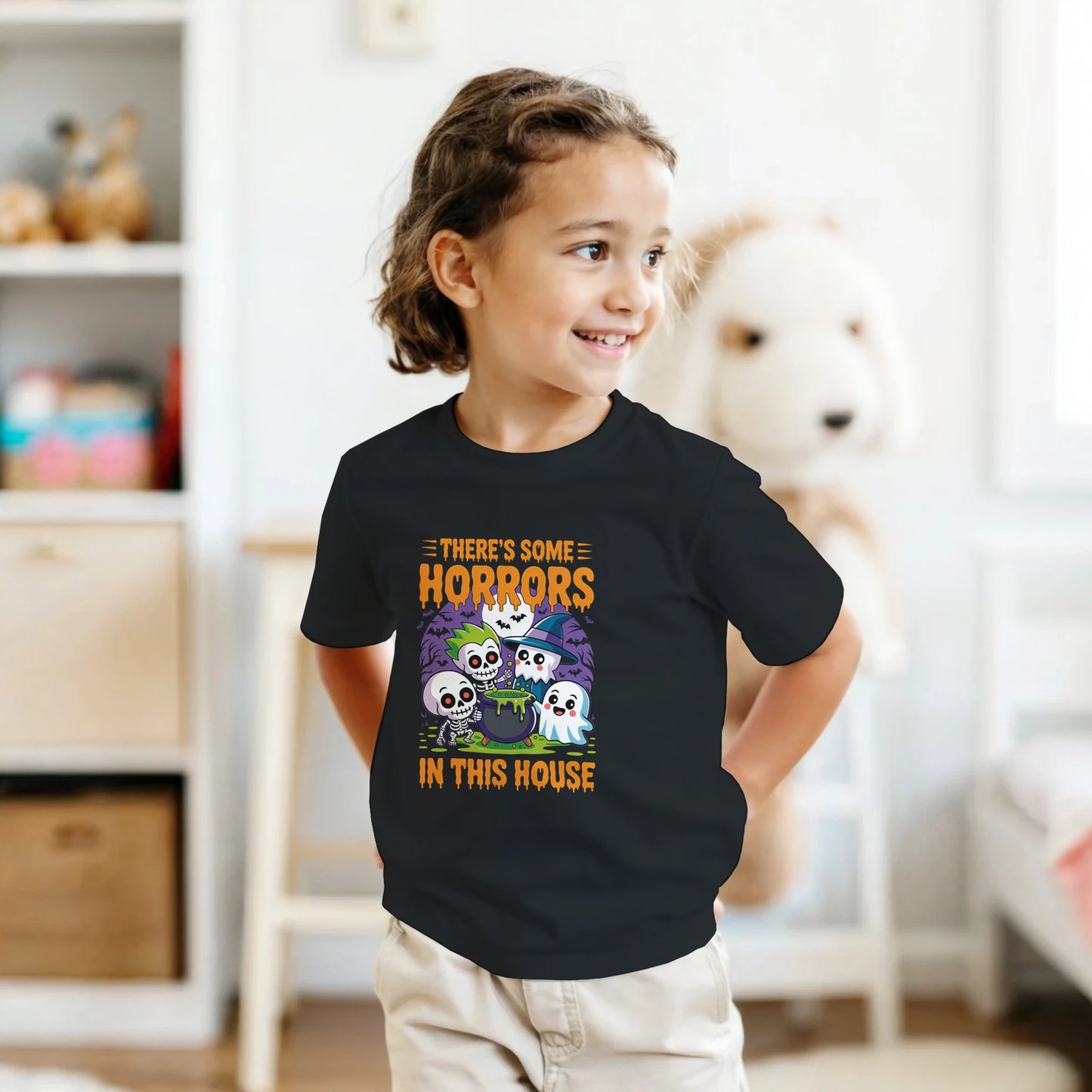 There’s Some Horrors in This House” Kids Halloween T-Shirt – Classic Crewneck Graphic Tee