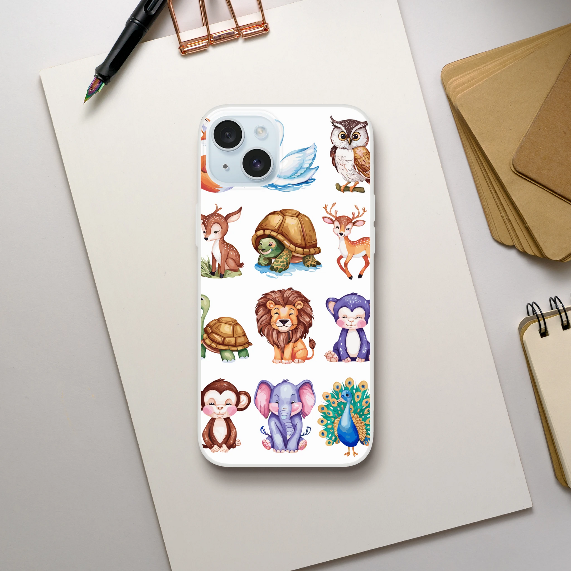 Watercolor Animal Stickers Flexi Phone Case – Cute Artistic Wildlife Design | Protective iPhone Case